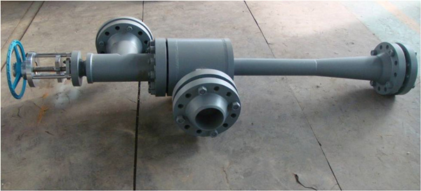 合成塔開工用“汽—水”噴射加熱器:用以在啟動(dòng)階段對(duì)反應(yīng)物進(jìn)行預(yù)熱。為了實(shí)現(xiàn)變速率加熱,我們通常將噴射器設(shè)計(jì)成自動(dòng)或人工可調(diào)結(jié)構(gòu)的。這類結(jié)構(gòu)的噴射器常用來需要經(jīng)常變負(fù)荷運(yùn)行的裝置中。