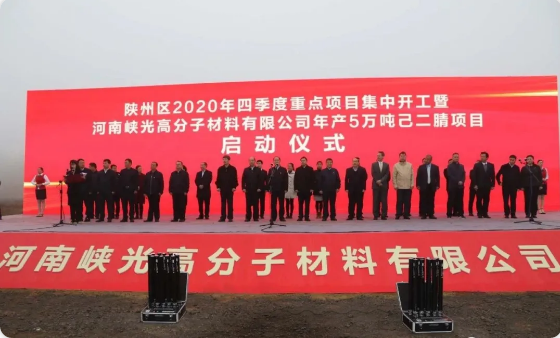 11月17日,陜州區(qū)2020年四季度重點(diǎn)項(xiàng)目集中開工暨河南峽光高分子材料有限公司年產(chǎn)5萬噸己二腈項(xiàng)目開工儀式在區(qū)產(chǎn)業(yè)集聚區(qū)舉行。