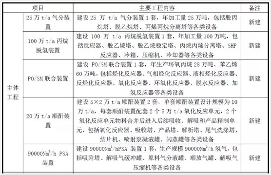 項(xiàng)目建設(shè)內(nèi)容:主要建設(shè)1套25萬噸/年氣分裝置、1套100萬噸/年丙烷脫氫裝置、1套28/60萬噸/年P(guān)O/SM聯(lián)合裝置、2套5×2萬t/a順酐裝置和1套9000Nm3/hPSA裝置及配套的公輔工程和環(huán)保工程。