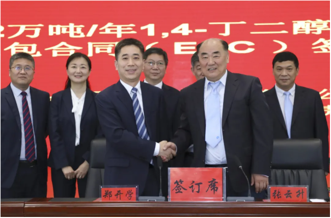 簽約儀式上,張?jiān)粕叨仍u(píng)價(jià)了華陸公司在1,4-丁二醇及相關(guān)產(chǎn)品領(lǐng)域的優(yōu)勢(shì)。他表示,作為國(guó)家高新技術(shù)企業(yè),同德化工是國(guó)家民爆行業(yè)的優(yōu)勢(shì)骨干企業(yè)。規(guī)劃建設(shè)的PBAT新材料產(chǎn)業(yè)鏈一體化項(xiàng)目是公司推動(dòng)產(chǎn)業(yè)轉(zhuǎn)型升級(jí)、提質(zhì)增效的重大投資項(xiàng)目,對(duì)公司實(shí)現(xiàn)高質(zhì)量發(fā)展具有重大的戰(zhàn)略意義,希望華陸公司高度重視,精心組織,建設(shè)交付精品工程。
