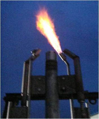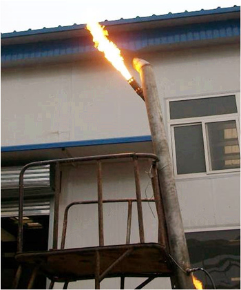 公司開發(fā)出的第五代新型長明燈?;鹧鎰倓牛皇軔毫託夂虻挠绊?,并且高效節(jié)能,單支長明燈天然氣耗氣量約3Nm