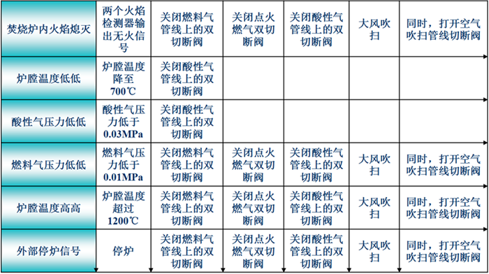 燃燒爐的點(diǎn)火操作;對(duì)燃燒裝置的啟停;酸氣、燃料氣的投入、停止等操作;火焰等主要工藝過(guò)程的流程指示。◆燃燒控制連鎖條件: